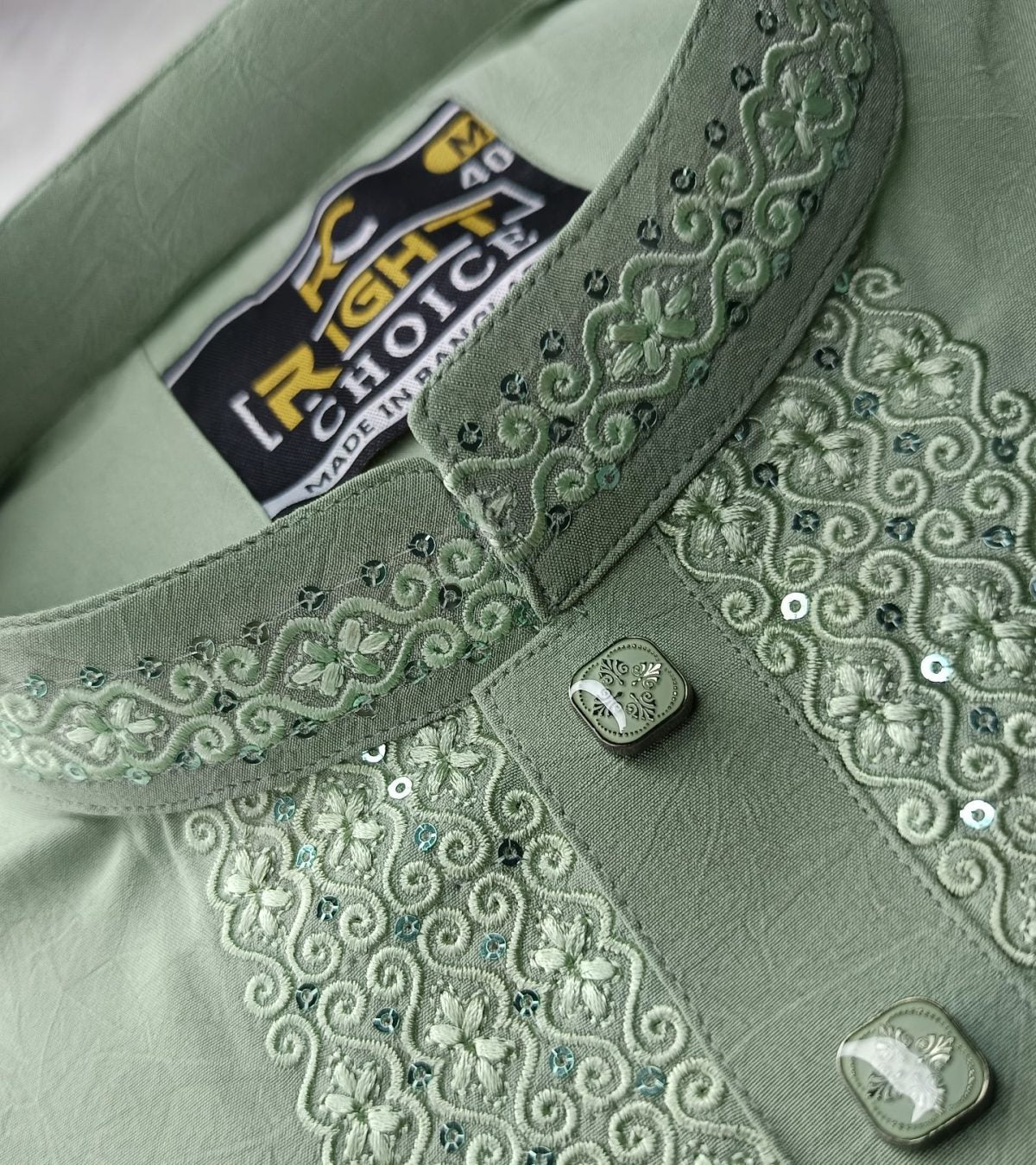 Stretch Embroidery Panjabi – তৈরি হয়েছে উন্নতমানের স্ট্রেচ ফেব্রিকে, যা সফট, লাইটওয়েট এবং পরতে আরামদায়ক। সামনে ও হাতায় রয়েছে সূক্ষ্ম সিকুয়েন্স ও মার্জিত এমব্রয়ডারির কাজ – যা আপনার লুকে আনবে প্রিমিয়াম ফিনিশিং ও স্টাইল। সাথে ব্যবহার করা হয়েছে উন্নতমানের ম্যাচিং স্টোন বাটন, যা পুরো লুককে করে আরও পরিপাটি ও আকর্ষণীয়।