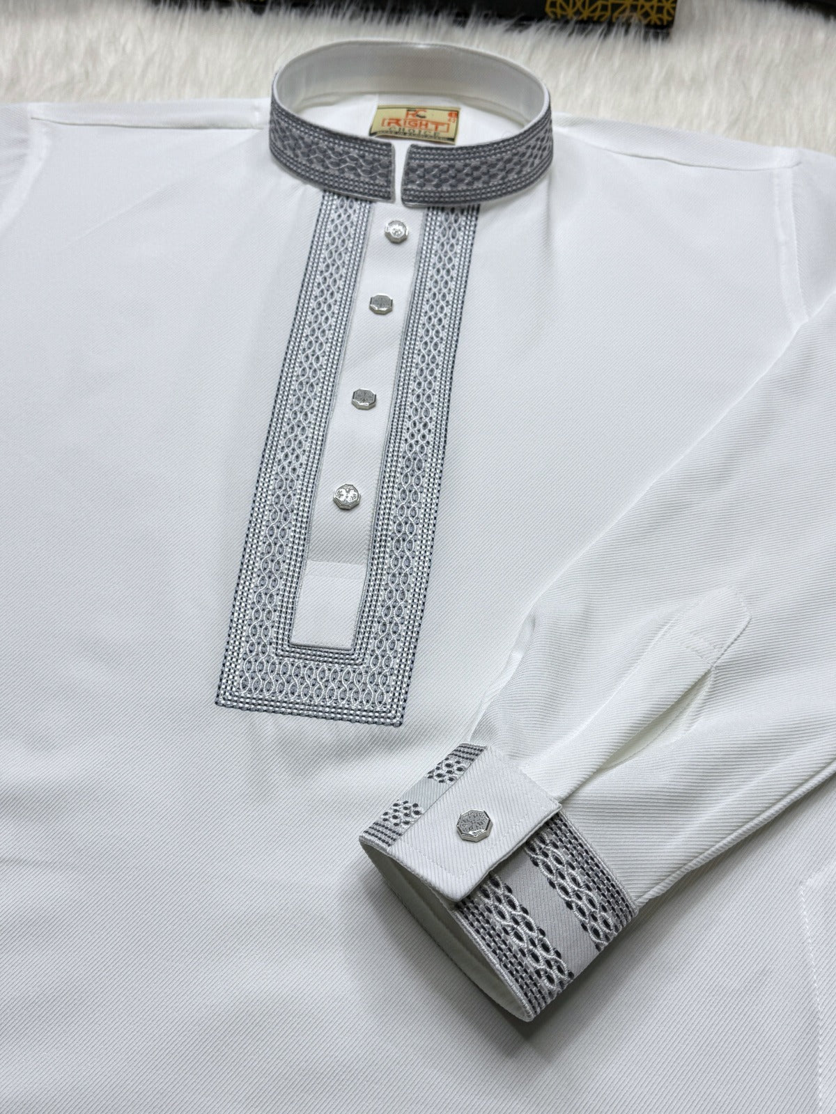 ফেব্রিক: ১০০% এলিগ্যান্ট চায়না চেলি কাপড় পাঞ্জাবি ফেব্রিক ব্যবহার করা হয়েছে, যা অত্যন্ত সফট, আরামদায়ক এবং ত্বকবান্ধব।
