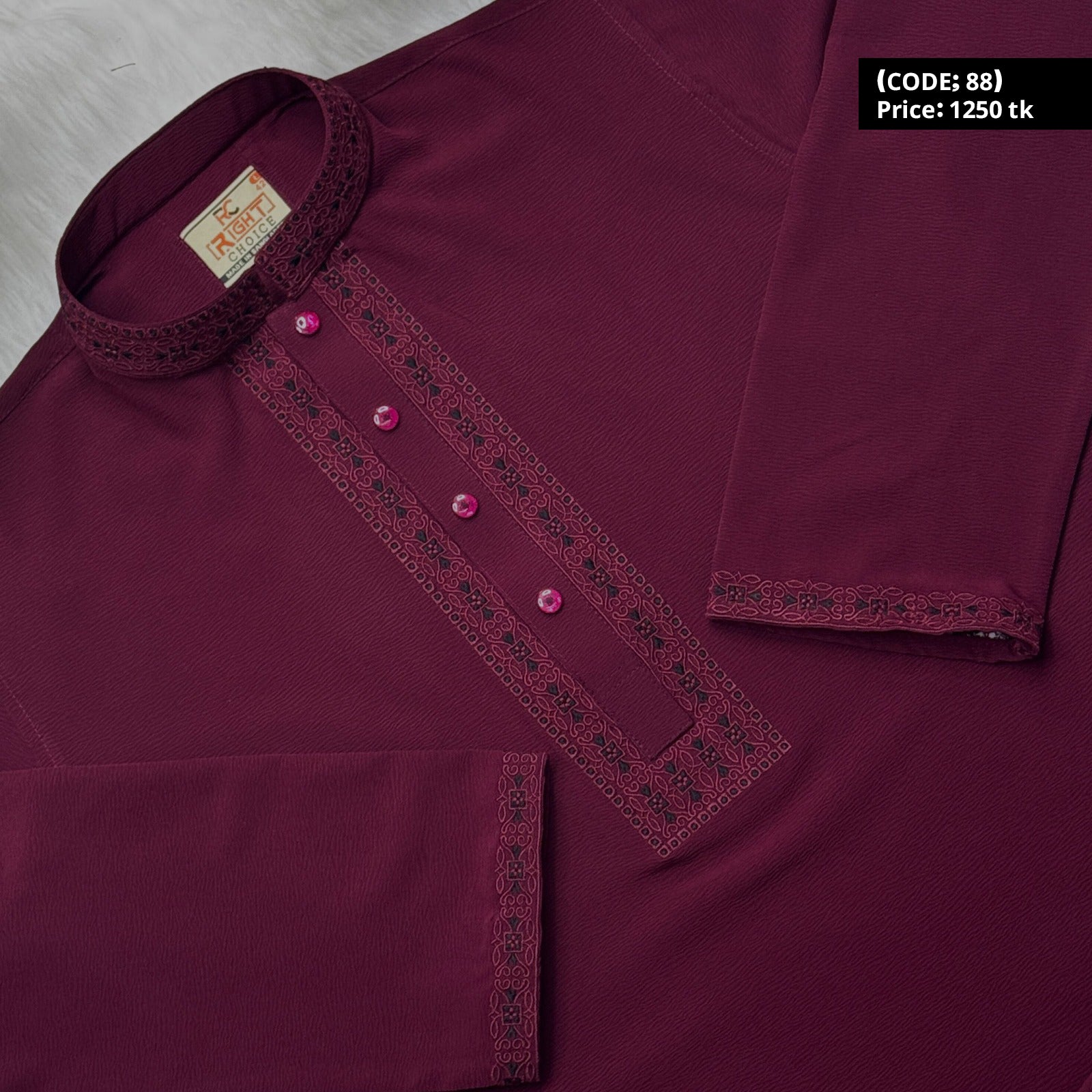 চায়না জাফরান কটন এমব্রয়ডারি পাঞ্জাবি 🔥 88