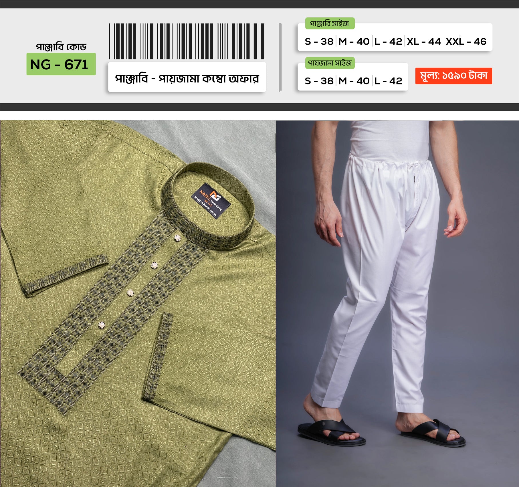 আমাদের নতুন প্রিমিয়াম পাঞ্জাবি এবং পায়জামা কম্বো কালেকশনের সাথে বিলাসিতা ও অভিজ্ঞতা নিন। অরিজিনাল চায়না মাইক্রো স্টিচ “ভাঙচুর” কটন দিয়ে তৈরি এই পাঞ্জাবিটি গরমের জন্য অত্যন্ত আরামদায়ক এবং এটি কুঁচকে যায় না, তাই ইস্ত্রি করার কোনো প্রয়োজন নেই। বিয়ে, ভিআইপি অনুষ্ঠান এবং উৎসবের জন্য একটি আদর্শ পোশাক। আপনার সংগ্রহকে সমৃদ্ধ করতে পাঞ্জাবিটি ছয়টি আকর্ষণীয় রঙে পাওয়া যাচ্ছে।